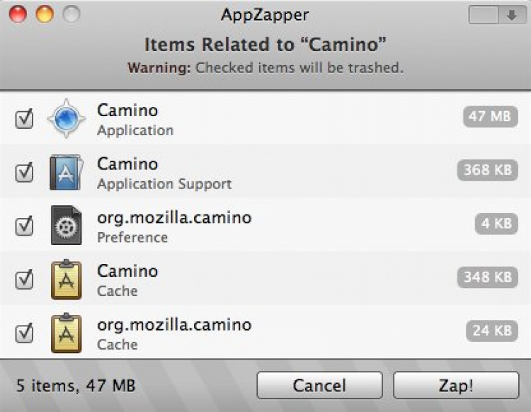 AppZapper Утилита для полного удаления программ из системы. Для удаления нужно просто перетащить программу в окно AppZapper. Так же Программа так же предоставит список файлов, связанных с удаленной программой, которые возможно тоже необходимо удалить. Нажмите на кнопку Zap! чтобы полность очистить систему от ненужных больше файлов.