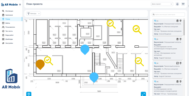 АР Мобайл — это платформа, которая обеспечивает доступ ключевым участникам строительного процесса к операционной информации по проекту, позволяет эффективно отслеживать статусы замечаний, автоматизировать создание документации и удобно обмениваться сообщениями и файлами с подрядными организациями в одном приложении.