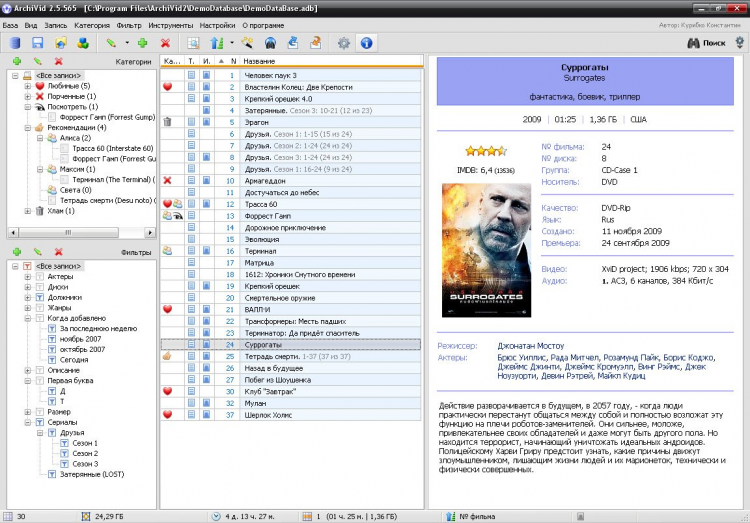 - Наглядно представить Вашу коллекцию, будь то фильмы, сериалы или аниме, хранящиеся на жестком диске, CD/DVD-дисках или видео-кассетах.