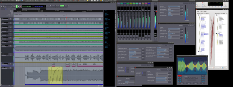 Ardour поддерживает произвольное количество звуковых дорожек и шин и систему маршрутизации чего угодно куда угодно. Все параметры громкости, панорамирования и параметры плагинов могут быть автоматизированы. Все операции микширования и процедура хранения сэмплов внутри выполняются в 32-разрядном формате с плавающей точкой для обеспечения высокой точности и достоверности.