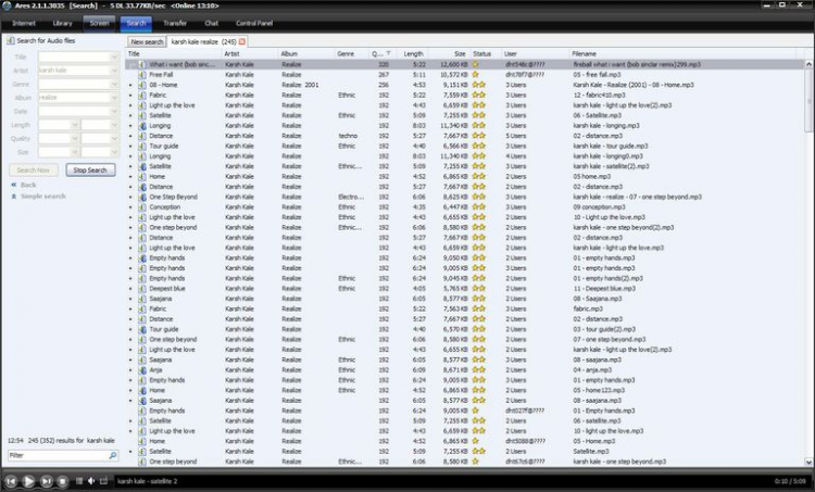 Ares это бесплатная программа для обмена, поиска и загрузки файлов (музыки и видео) в P2P сети Ares Galaxy, работающей аналогично популярным сетям как Gnutella, Kazaa и Morpheus и с отличной скоростью поиска.