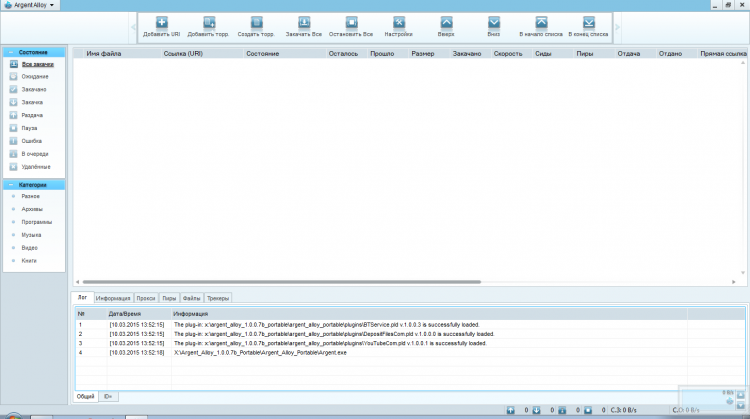 Argent Alloy - это функциональный торрент-клиент. Позволяет скачивать файлы с торрент-трекеров, с различных хостингов. Он также поддерживает magnet-ссылки. Argent Alloy обладает удобным и понятным интерфейсом, и множеством полезных функций.