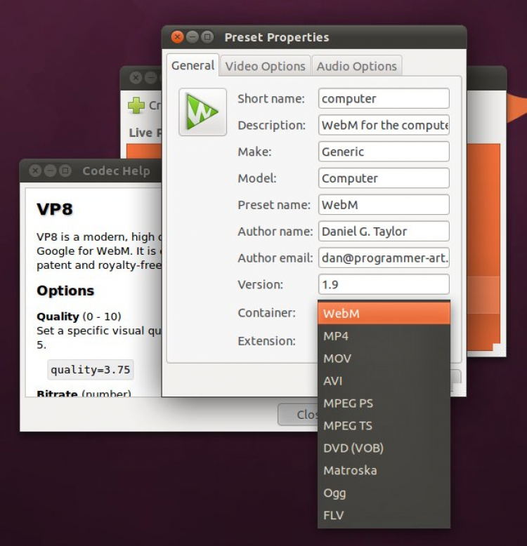 - Аудио: AAC, Vorbis, MP3, FLAC, Speex, WAV.