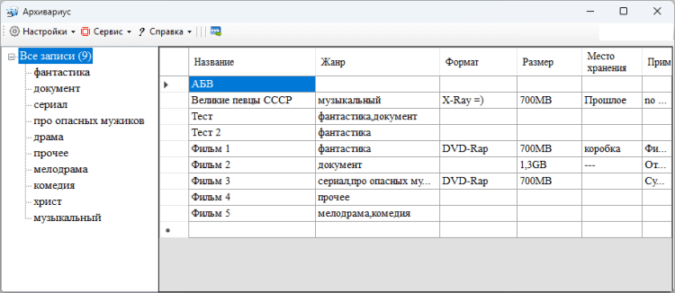 Архивариус - это программа для хранения списка фильмов в удобном текстовом формате. Естественно, работа со списком осуществляется через программу, но Вы можете воспользоваться списком там, где нет программы. Например, на другом компьютере, мобильном телефоне и т.д.