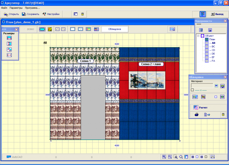 Аркулятор - это программа для расчета облицовочных материалов с точной расстановкой элементов облицовки; реализация разных схем облицовки(плитка, обои, стеновые панели, другие системы отделки); поверхности любых форм. В удобном и понятном интерфейсе можно грамотно рассчитать, сколько каких материалов вам нужно.