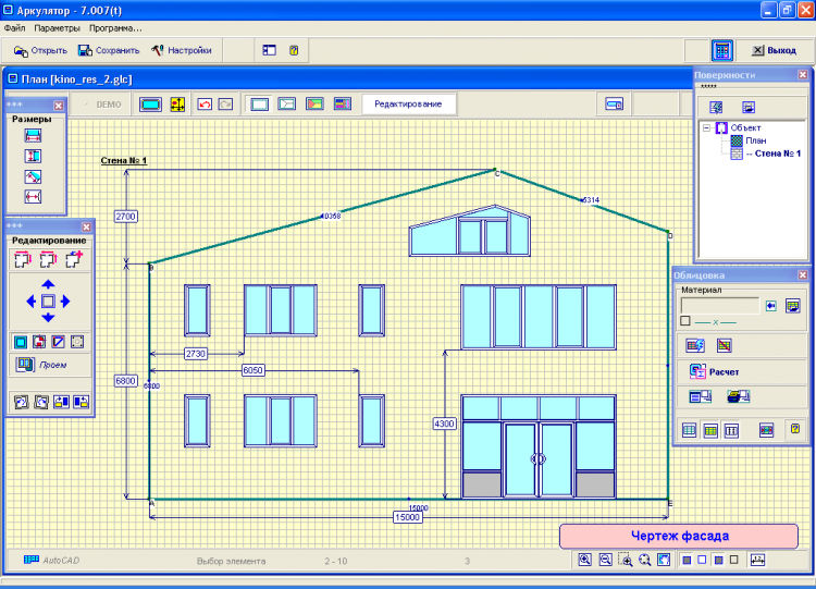 Аркулятор(НВФ) - это программа для расчета навесных вентилируемых фасадов. Независимый редактор для построения, стены и проемы произвольной формы, разметка линий привязки элементов конструкции. Графическая расстановка плит, профильного каркаса, мест крепления, расчет плит, профиля, кронштейнов, кляммеров. Площади поверхностей стен, откосов, отливов. Возможность импорта чертежа из AutoCAD. Доработки под особенности любых систем.