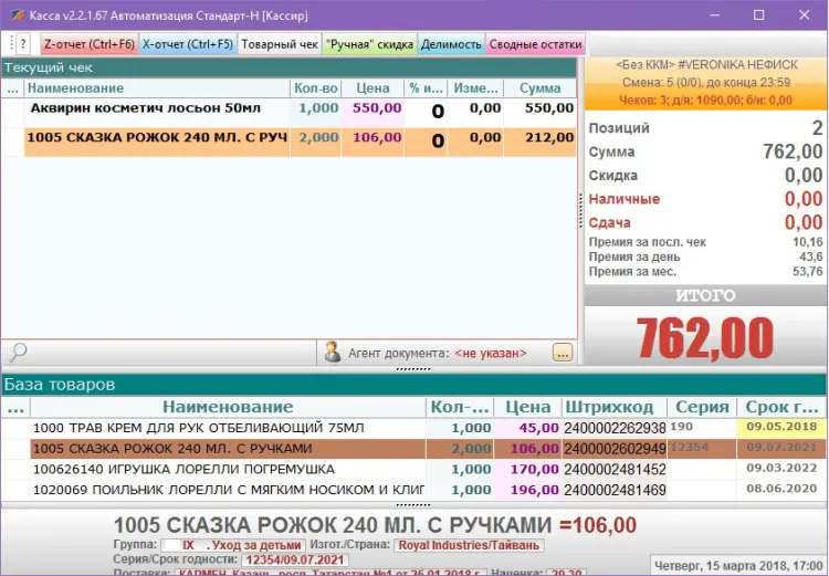 - Отображение базы товаров, включая весь ассортимент, данные по товару (серия/партия, срок годности и др.), в режиме реального времени (то что в компьютере – то и на полке);