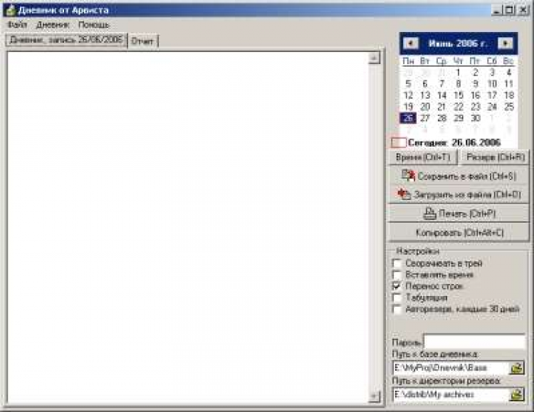 AS Diary v.1.0 beta Самый простой дневник, записи по дням храняться в соответствующих текстовых файлах. подойдет тем кто ведет блоги, а также кому необходимо вести например учет собственного рабочего времени.
