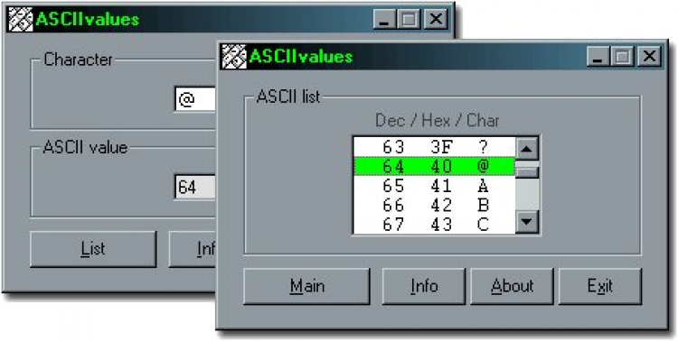 Ищете простой и удобный способ узнать ASCII-значения символов? Тогда вам нужно скачать ASCIIvalues! Эта небольшая, но полезная утилита позволяет мгновенно определять ASCII-код любой нажатой клавиши на вашей клавиатуре. Программа идеально подходит для программистов, веб-разработчиков и всех, кто работает с текстовыми данными и нуждается в быстром определении ASCII-кодов.