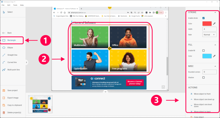 Ashampoo Snap позволит вам создавать снимки экрана или снимать видео с рабочего стола вашего компьютера. Она поддерживает установку таймера для съемки и установку захвата окон или веб-сайтов с прокруткой.