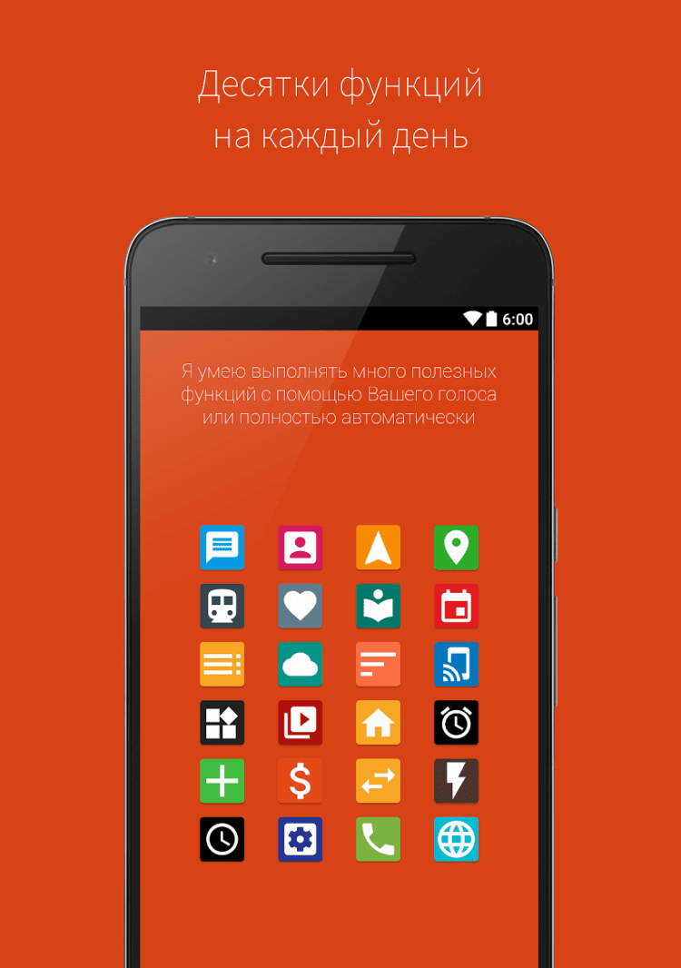 Приложение работает на основе русского синтезатора речи и голосового поиска от Google, поддерживает ОС Android 4.x, 5.x, 6.x, 7.x, 8.x.