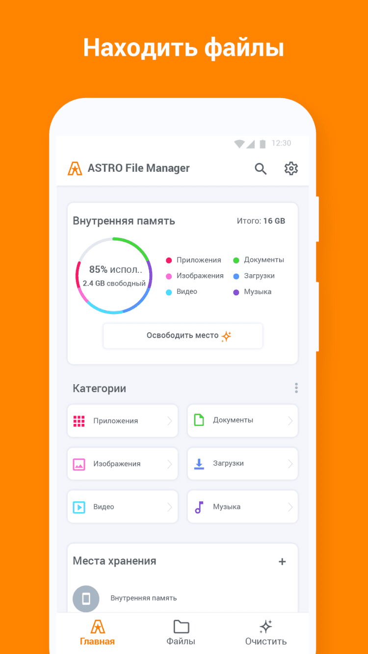 ASTRO File Manager позволяет сортировать и использовать картинки, документы, музыку, видео и другие файлы вашего телефона или планшета.
