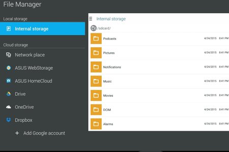 ASUS File Manager Удобный файловый менеджер от Asus, позволяющий работать как с файлами из памяти устройства, так и с SD-карт, локальной сети, а так же из облачного хранилища. Программа позволяет подключаться к ASUS WebStorage и HomeCloud, Dropbox, Google Drive и Microsoft OneDrive, а так же взаимодействовать с сохраненными там файлами. Приятной особенностью программы является возможность потокового воспроизведения музыки и видео, хранящихся на облаке.
