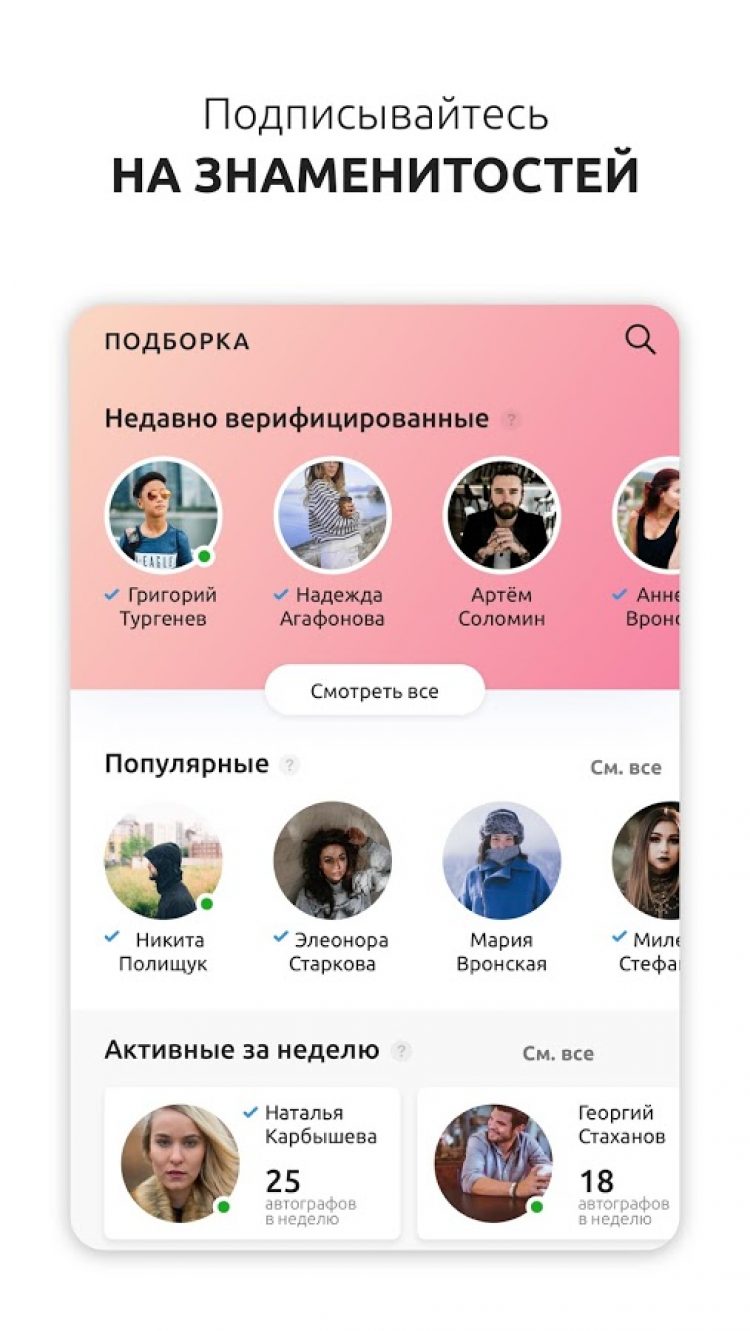 Кроме того, в приложении ATGRPH каждый желающий может раздавать автографы своим подписчикам. А те, кто подтвердит свою учетную запись, смогут публиковать собственные фотографии или видео с активными ссылками, за просмотр которых пользователи будут получать баллы.