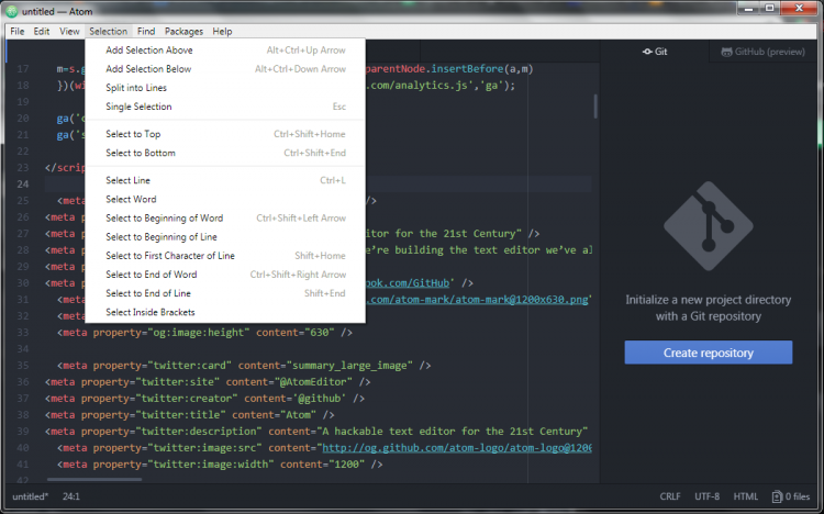 Возможности Atom: