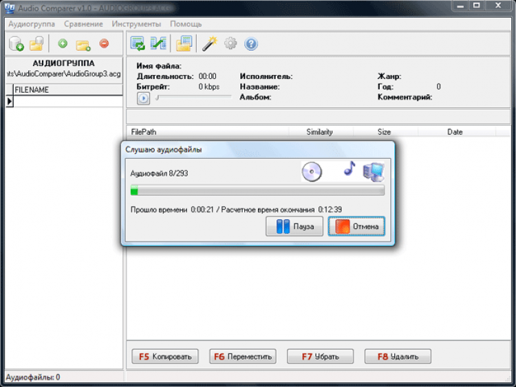 Audio Comparer - это приложение для поиска схожих по звучанию MP3, MP2, MP1, WMA, AIF, WAV, WavPack, FLAC, APE, AAC и OGG аудиофайлов. Основное применение программы - это поиск дубликатов аудиофайлов и файловые операции с ними - перемещение, удаление, копирование. Но Audio Comparer это не просто обычная программа для поиска дубликатов, мы считаем она лучшая в своем классе. Почему? Об этом в следующем абзаце.