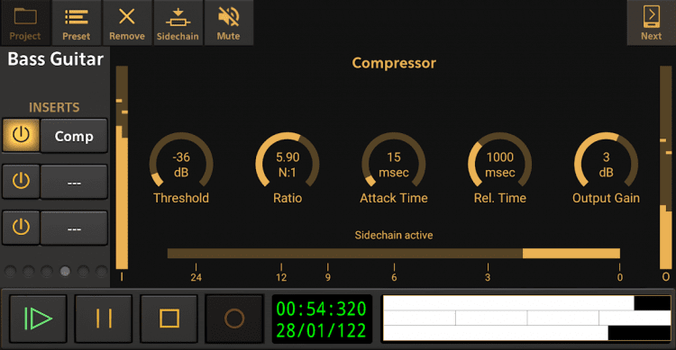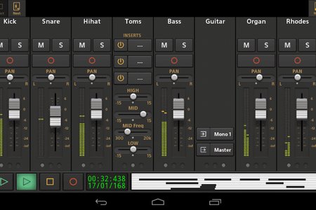 С помощью данной программы, вы сможете управлять громкостью, настраивать 3-полосный эквалайзер и использовать до 3 эффектов для каждой дорожки по отдельности. Помимо этого, программа обладает встроенным метрономом, инструментом для создания "лупов", возможностью импорта аудио файлов в форматах WAV, MP3, AIFF, FLAC, Ogg/Vorbis, функцией компенсирования задержки аудио сигнала, позволяет осуществлять программный мониторинг для аудио-устройств, подключенных по USB и некоторых Android-девайсов, способных обеспечить достаточно низкий уровень задержки сигнала, мастеринг (сведение) композиций в стерео формат WAV, AIFF, FLAC или OGG.