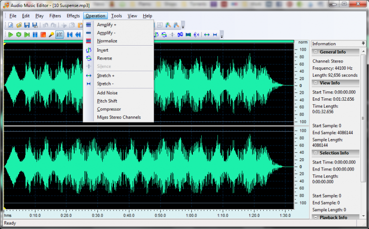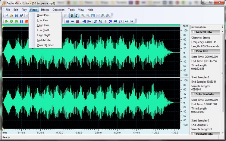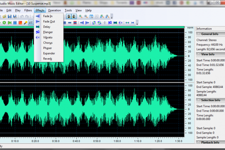 Audio Music Editor также позволяет накладывать разнообразные эффекты и фильтры. В арсенале редактора есть такие эффекты/фильтры, как нарастание/затухание, задержка, реверберация и множество других. Помимо этого в нем есть и редактор тэгов. Это мощный и простой в использовании редактор аудио файлов для Windows, который поможет решить практическую любую задачу.