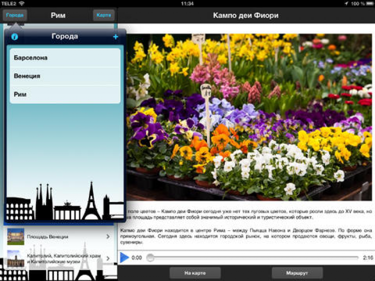 - Все достопримечательности детально описаны, снабжены фотографиями и озвучены профессиональными дикторами на русском.