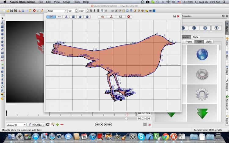 Программа умеет экспортировать созданную анимацию в AVI, FLV, MPG, Flash (SWF), GIF или статичные форматы PNG, TGA, BMP.