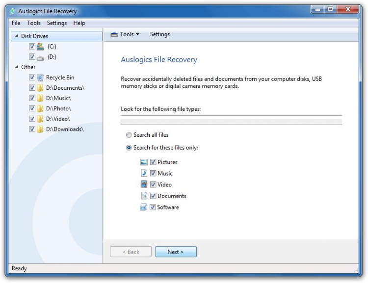Восстановитель файлов от Auslogics, как и остальные продукты разработчика, является узкоспециализированной программой. Благодаря этому приложение занимает 15 Мб на жестком диске и оперативно выполняет поставленные задачи.