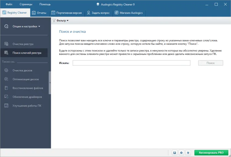Registry Cleaner представляет возможность производить поиск ошибок реестра по заданным ключам. Достаточно вбить в поисковую строку ключевое слово. Инструмент требует определенного понимания работы реестра, потому подойдёт для продвинутых пользователей.