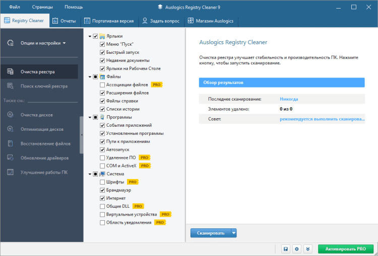 Auslogics Registry Cleaner - это специализированное приложение, которое занимается чисткой реестра системы. Поддерживает ОС Windows 7, 8, 10. Доступно на русском и английском языке.