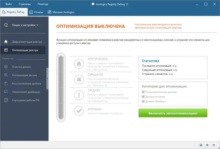 Auslogics Registry Defrag - это простая в использовании программа для дефрагментации реестра ОС Windows. Она повышает стабильность и компьютера за счет оптимизации структуры реестра.