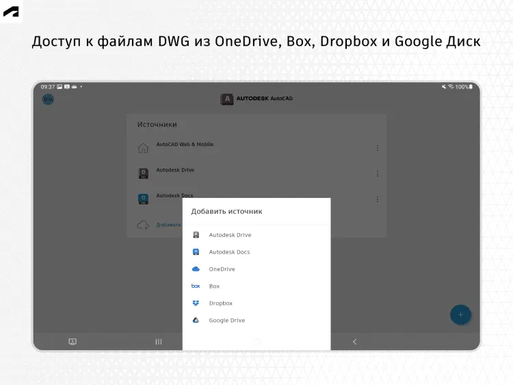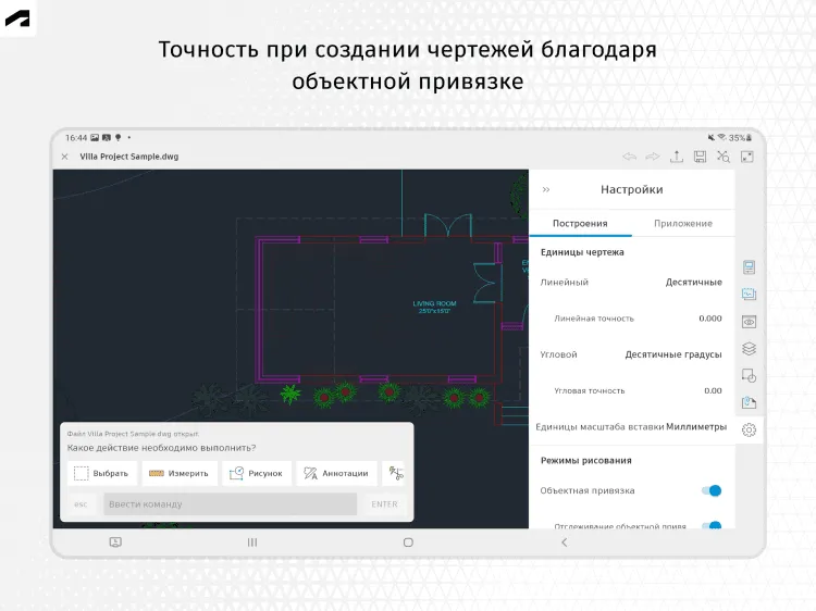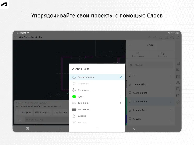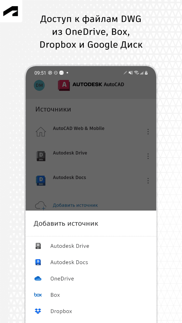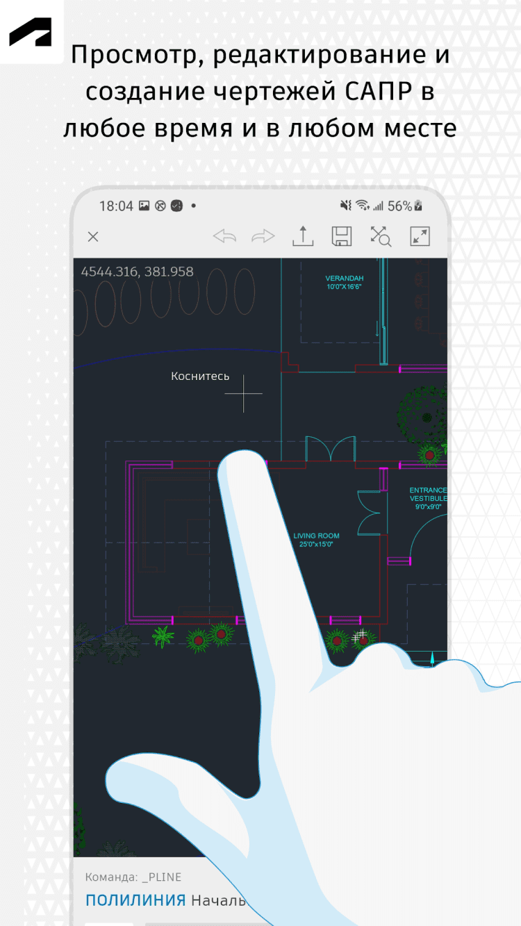 Это приложение позволяет работать с чертежами AutoCAD непосредственно на смартфонах Android или планшетах.