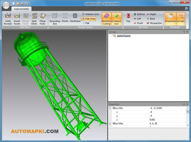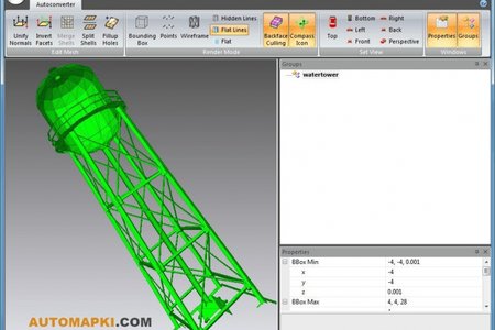 Autoconverter — это программа, которая позволяет импортировать/экспортировать и конвертировать 3D файлы между разными форматами. Она поддерживает множество разновидностей файлов, включая STL, OFF, OBJ, 3DS, IV, SAT, PLY, VRML, 3DM, SKP, DAE, STEP, IGES, BREP, ASC, IFC, FBX, 3MF, X3D и DXF.
