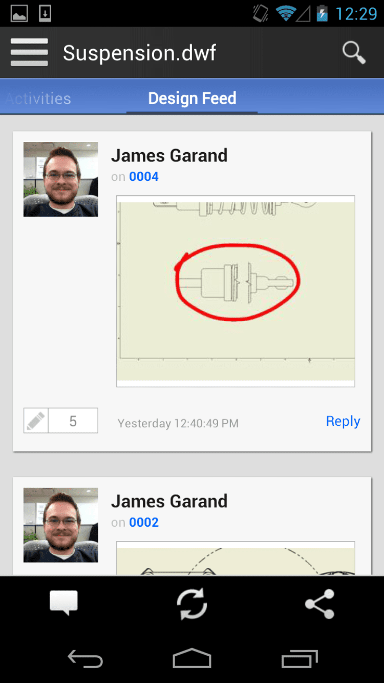 - просматриваются файлы проектов 2D и 3D в формате чертежей DWG и открытом формате для обмена проектными документами DWF. Результаты редактирования и комментарии автоматически сохраняются;
