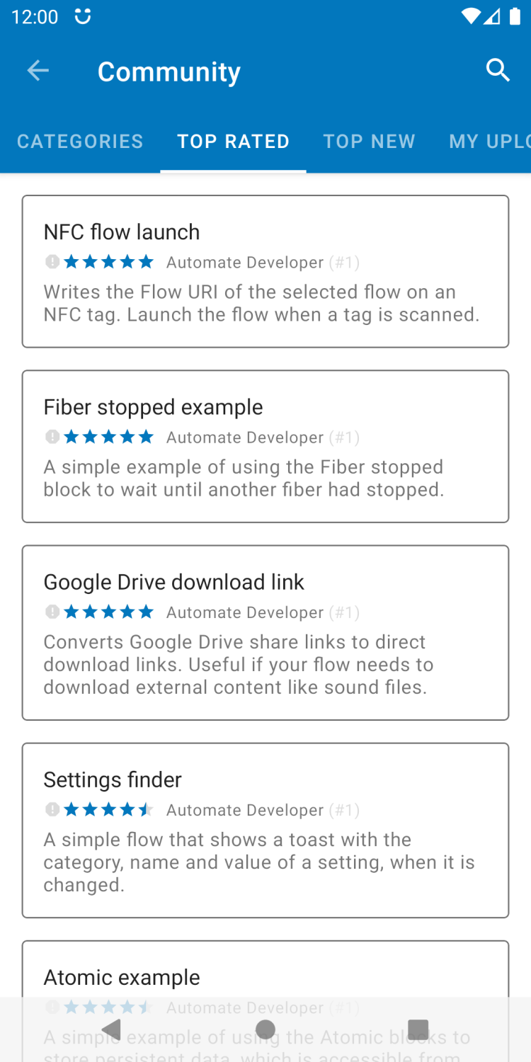 - возможность скачать «потоки» автоматизации, созданные другими пользователями, либо поделиться своими творениями