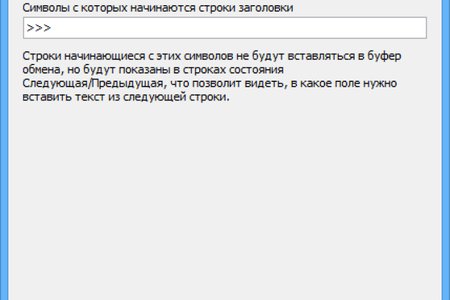 - Строки начинающиеся с определенных символов используются, как строки заголовки, они показываются на панелях следующая/предыдущая строка, но не вставляются в буфер обмена.