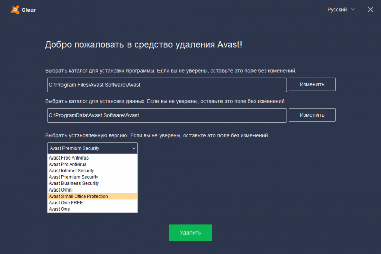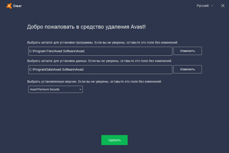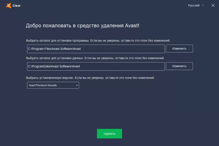 Avast Clear это специализированная утилита для удаления из Windows антивирусов Avast. Проста в использовании, доступна на нескольких языках, включая русский.