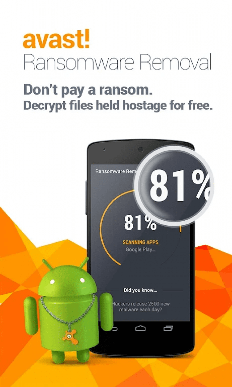 Avast Ransomware Removal — это программа для удаления вредоносных программ Cryptolocker и Simplocker с Android-устройств. Эти программы блокируют доступ к устройству и файлам на нем. Для того, чтобы удалить их, необходимо удаленно установить Avast Ransomware Removal, к примеру, через Google Play, а затем нажать на иконку приложения в панели уведомлений. После очистки устройства, приложение рекомендуется удалить, чтобы при необходимости воспользоваться им снова.