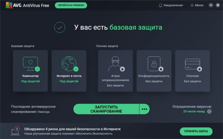 AVG Antivirus Free это бесплатная антивирусная программа для Windows, которая защитит ваш компьютер от всевозможных вредоносных элементов и кибер-угроз, с которым пользователь может столкнуться в сети. Утилита проста в установке и использовании. Она обеспечивает непрерывную защиту системы, может сканировать отдельные папки и внешние носители, проверяет электронную почту.