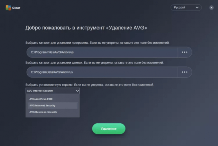 Полное удаление с AVG Clear