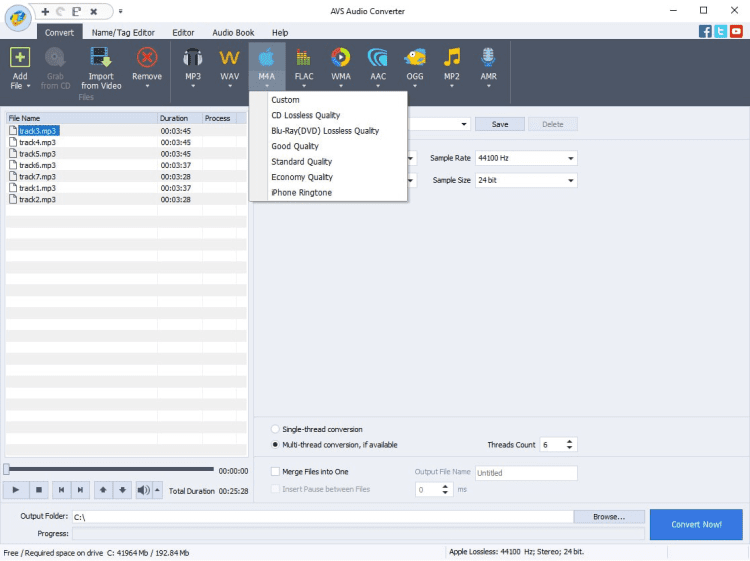 AVS Audio Converter обладает удобным и понятным пользовательским интерфейсом и прост в использовании. Конвертер предоставляет на ваш выбор несколько профилей качества, а также возможность ручной настройки отдельных параметров звука.