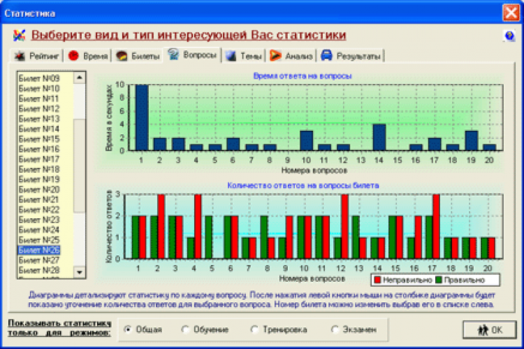 Перед использованием программы настоятельно рекомендуется ознакомиться с особенностями каждого режима для правильного и эффективного обучения. Информация о вопросах в билетах устанавливается в виде отдельных баз вопросов, при этом имеется возможность интерактивного изменения рабочей базы. У пользователя есть выбор, для какой категории и какой тип базы устанавливать.