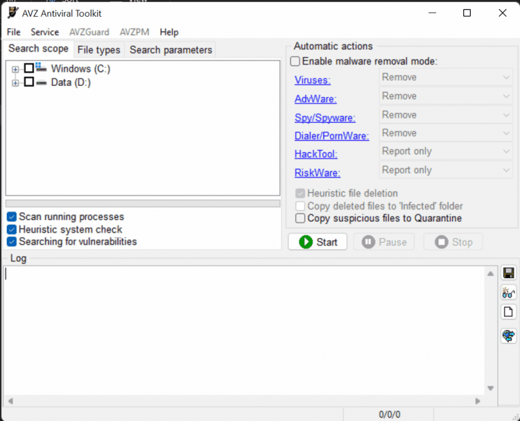 Особенностями утилиты AVZ (помимо типового сигнатурного сканера) является