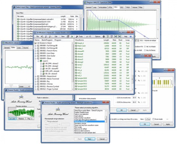 Awave Studio - это универсальная программа для редактирования, конвертирования и воспроизведения аудио файлов. Поддерживает более 290 аудио форматов. Так же с ее помощью можно копировать музыку с аудио дисков, и производить запись звука. Поддерживается пакетная обработка файлов.