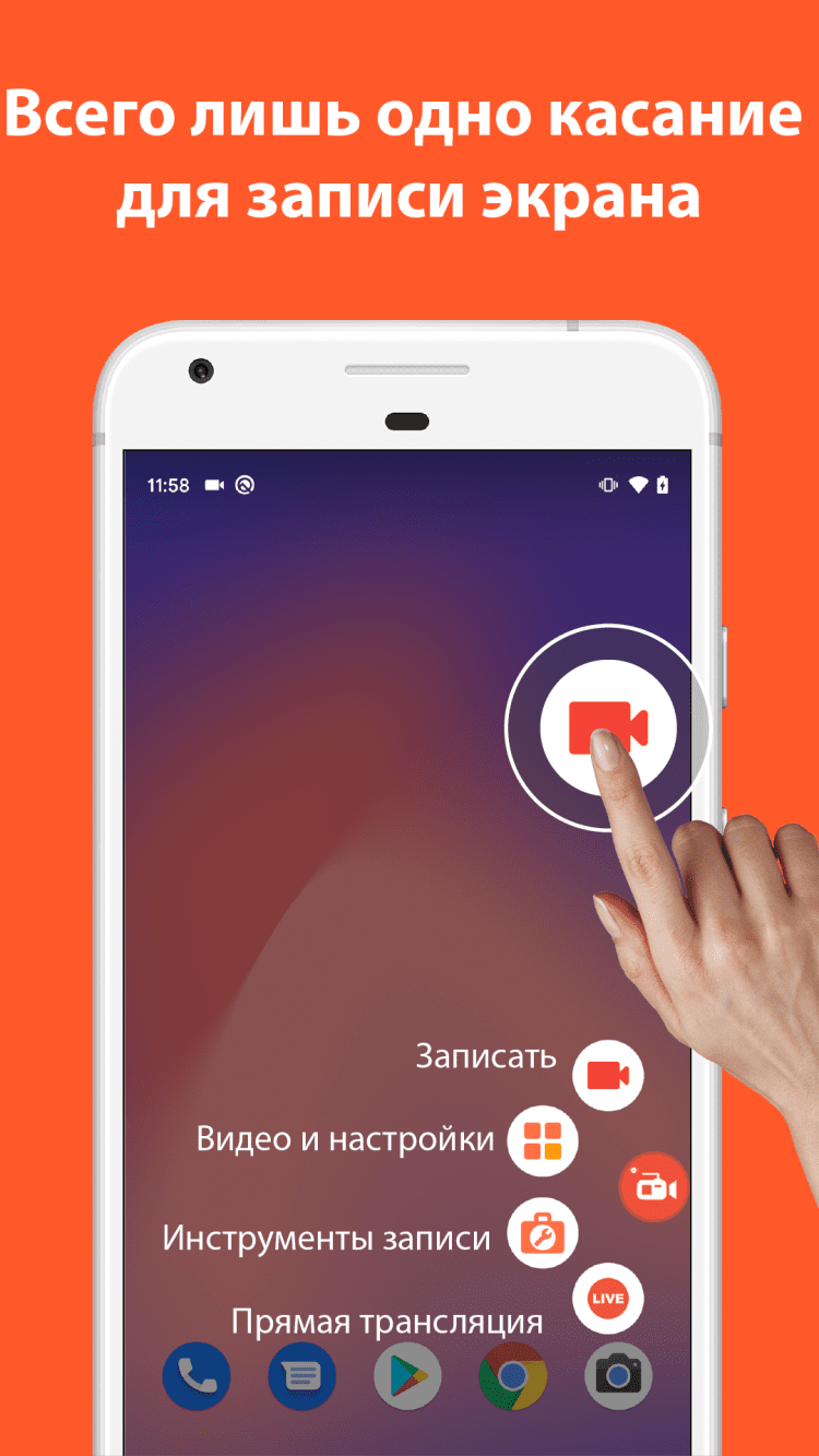 AZ Screen Recorder - No Root Бесплатное приложение для записи видео с экрана Android-устройств, не требующее рута. Приложение AZ Screen Recorder не имеет ограничений по времени записи, не добавляет водяных знаков, а так же позволяет записывать HD и FullHD видео всего в несколько кликов. Помимо этого, программа позволяет записывать звук с микрофона устройства, показывать нажатия на экран, задавать ориентацию экрана, таймер выключения записи, а так же выбирать папку для сохранения видео.