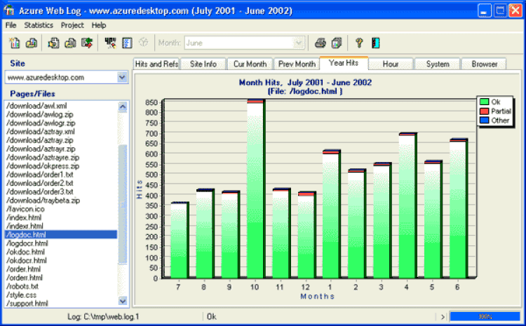 Azure Web Log - это программа для обработки логов Web-сервера и сбора статистической информации. Можно обрабатывать последовательно несколько лог-файлов, максимальный период за который хранится статистическая информация - 1 год.