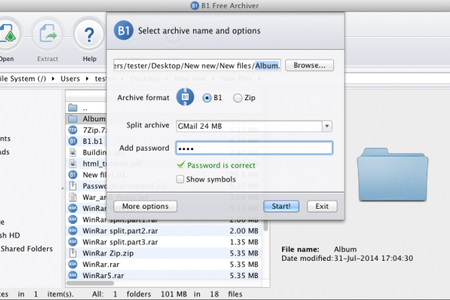 Благодаря B1 Free Archiver, вы сможете сделать работу с архивами на своём Mac значительно проще. Программа обладает достаточно современным, приятным и понятным интерфейсом, а её главное окно работает по типу Finder. В нём вы сможете просматривать все файлы и папки, находящиеся на вашем компьютере, чтобы быстро найти данные, которые необходимо упаковать в архив. Создание архивов не составит никакого труда и потребует лишь несколько кликов. Всё, что для этого необходимо - это указать папку, которую вы хотите упаковать, затем выбрать формат - B1 или ZIP. При необходимости, используя B1 Free Archiver вы также можете установить пароль на доступ к архиву, чтобы защитить важные данные.
