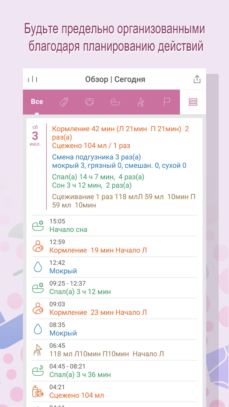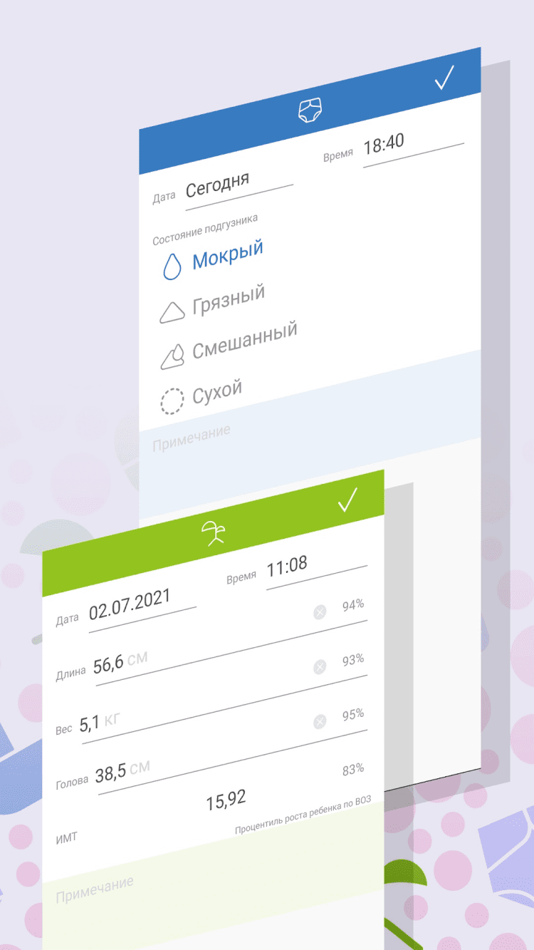 - сохранение информации о смене подгузника;