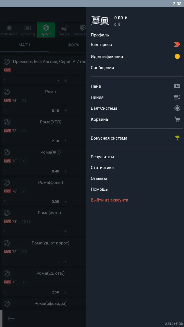 Ставки на спорт с помощью андроид приложения Балтбет apk