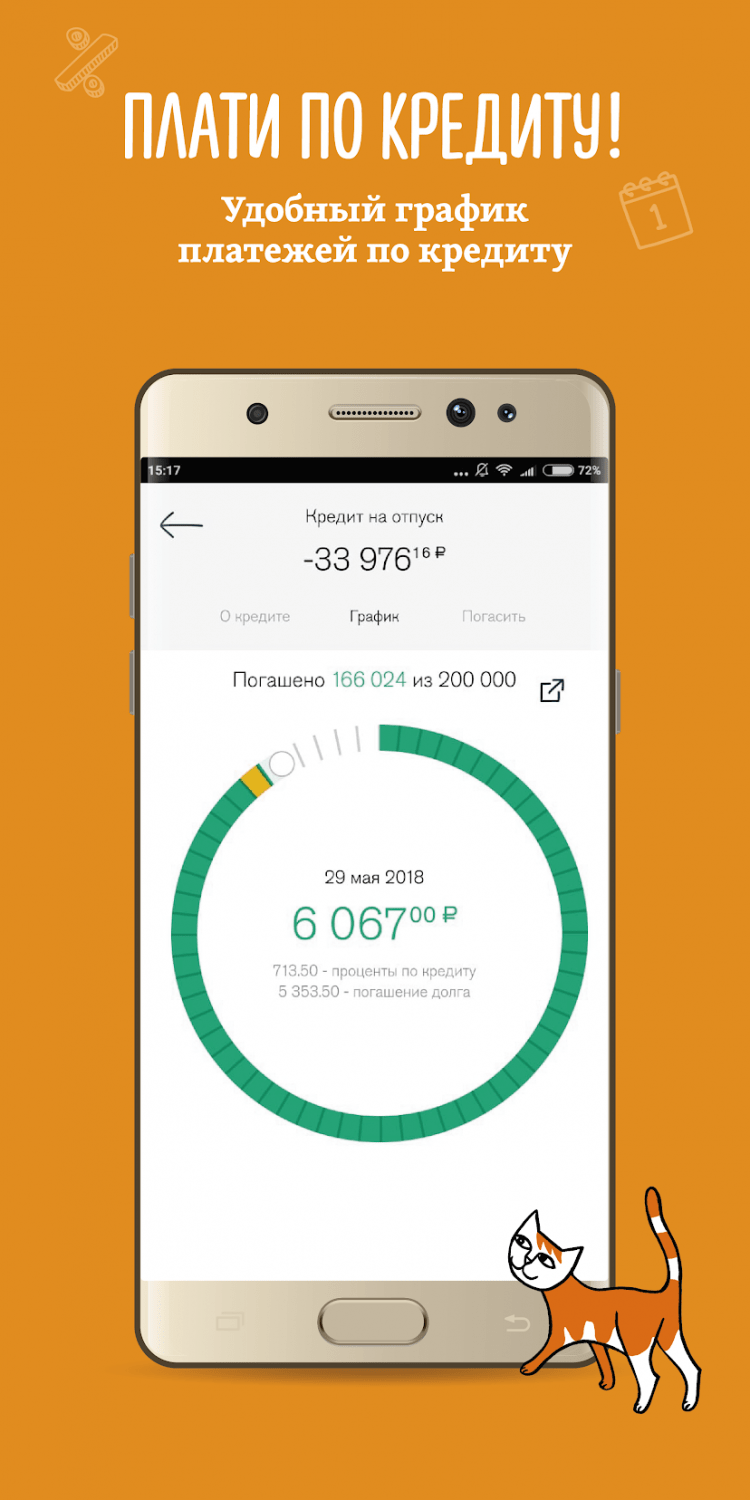 На главном экране, вы увидите все свои счета и карты, а также сможете контролировать остаток денежных средств.Здесь же расположена информация по кредитам с указанием суммы задолженности. Для вашего удобства, в последней версии приложения присутствует информация обо всех совершенных операциях. Разумеется, программа позволяет комфортно оплачивать коммунальные услуги, сотовую связь и интернет, а также налоги, штрафы и прочие начисления.