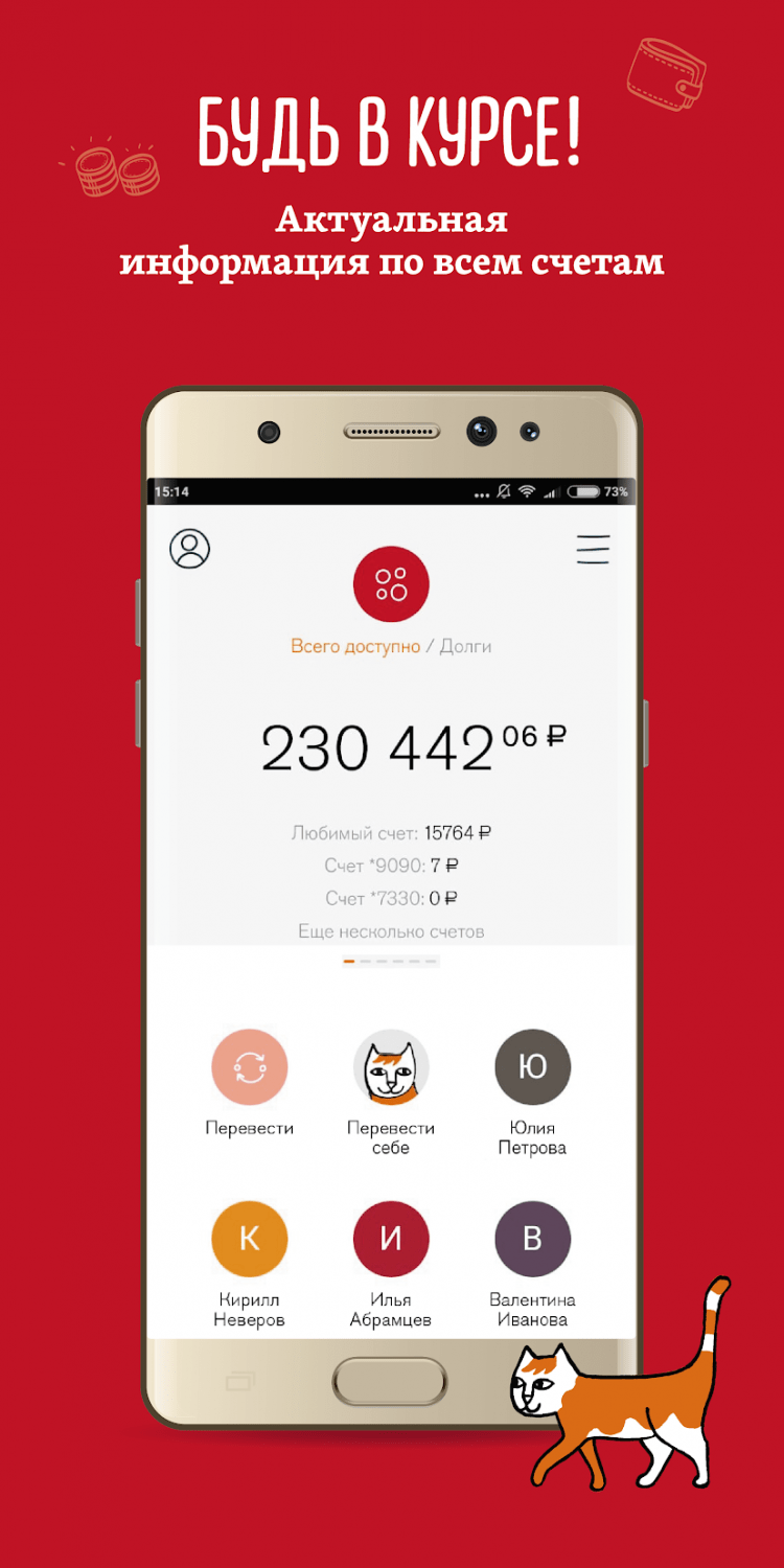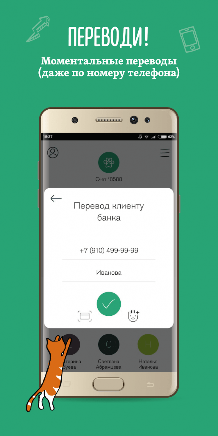 - Быстрые денежные переводы между счетами, вкладами и картами;