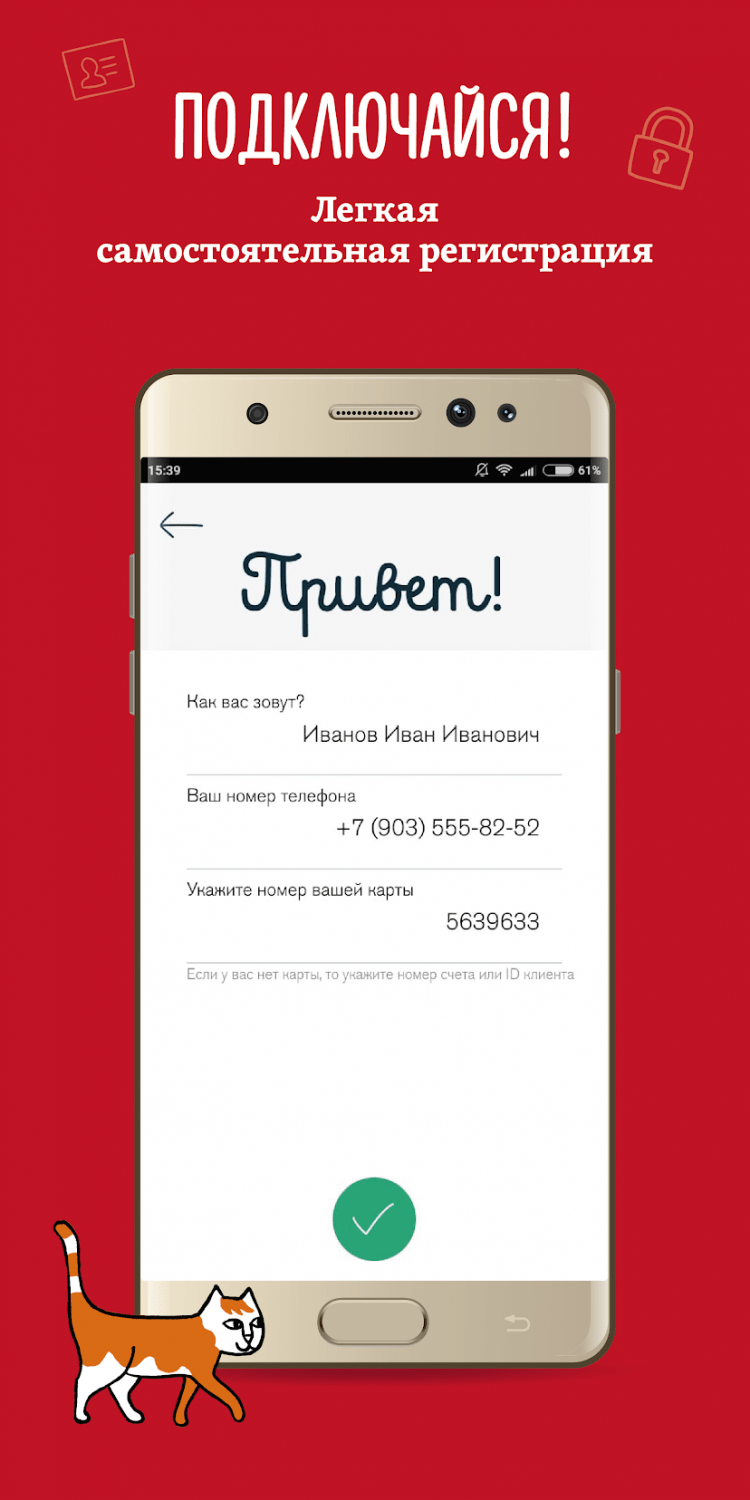 Для того, чтобы начать использовать приложение, необходимо предварительно пройти небольшую регистрацию. Для этого, скачайте последнюю версию программы Банк Пойдём! на свой гаджет и заполните регистрационные поля: ФИО, номер мобильного телефона, номер карты или счёта и получите временный пароль по СМС. После этого, можно начинать пользоваться программой.
