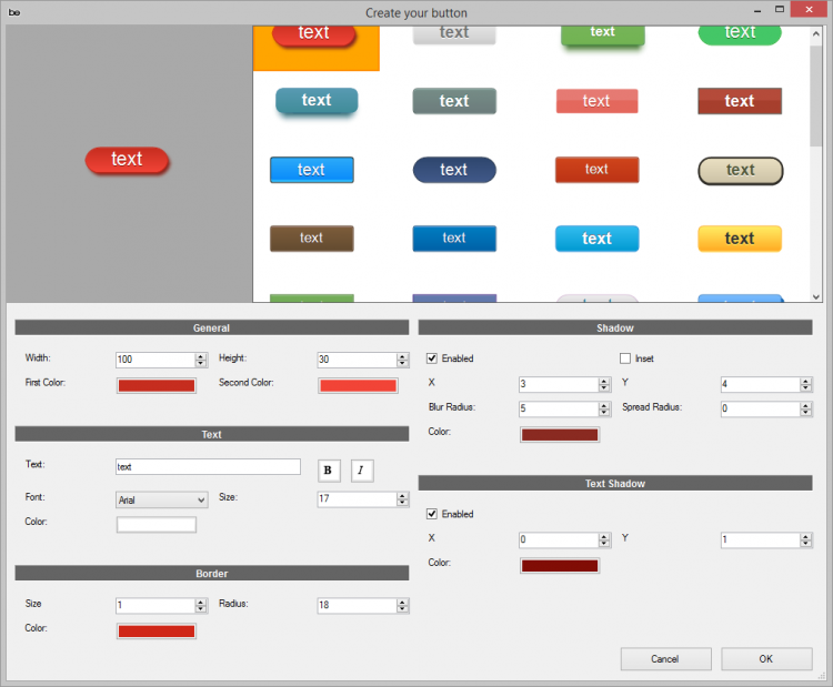 На банер также можно добавить кнопки. Программа предлагает на выбор множество дизайнов кнопок. Более того, вид кнопки можно настраивать меняя цвет фона, добавляя контур, тени и текст.